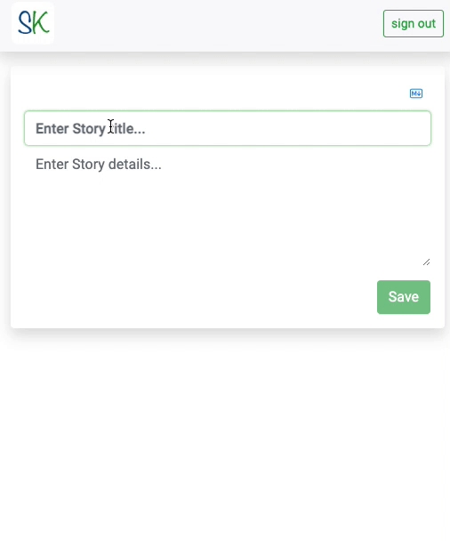 When in this mode the only option available to the user is to enter a story title and details and save the story. They will not see the "My Stories" list.